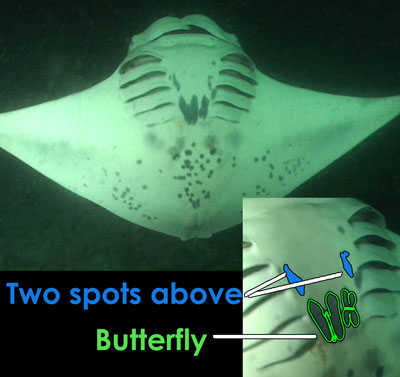 She is seen quite frequently. Even though Amanda is young, she was running for 1st place manta in our 2013 annual sighting statistics. She feeds almost every night at the Sheraton Keauhou. She is not shy and loves to be where the food is!