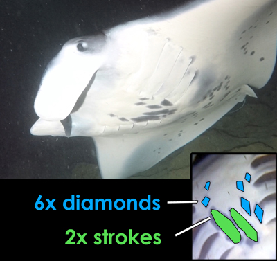 Black Diamond is a beautiful male manta ray that Kerstin Windberg saw for the first time on June 26, 2019 at Kauna’oa Bay. He was a pup with 3 feet but grew to already 4-5 feet.