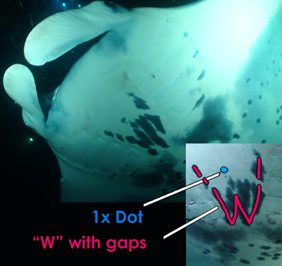 Cara Ray was identified in July 2005 at Manta Village She was approximately 6 feet wide but has grown to 10-12 feet.