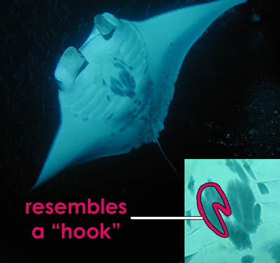 Curly Ray was first identified on September 3, 1999 at Manta Heaven. We estimate his wingspan at 8-10 feet.