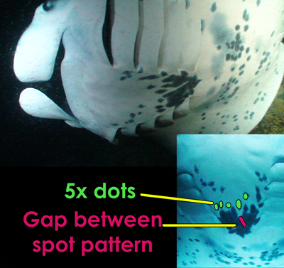 Delaney Ray was identified on August 23, 2008 by Scott Blain at Manta Heaven. Back then she was about 6 feet wide and most often seen at Manta Heaven with the occasional visit to Manta Village.