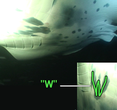 Independence Ray was first identified at Manta Village (Keauhou) on June 28, 2011 by James Wing. He was approximately 4 feet across and has been seen at both dive locations. He is very shy on the night experience and doesn’t like to come close to the divers or snorkelers.