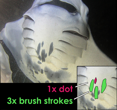 Kansas Ray was first seen on February 9, 2016 by James Wing in Kauna’oa Bay. He was a pup with 5 feet across.