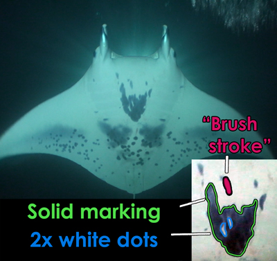 In 2013 (same year of her ID) Lee Ray was seen 42x and hasn’t slowed down since. She used to be one of the smaller manta rays, however that hasn’t stopped her from being in the middle of the “feeding action” with close-ups to snorkelers and divers. She is one bold manta!