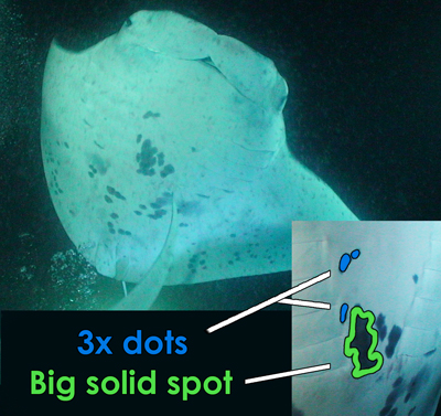 Margo Ray was identified on February 12, 2007, and was a youngster with about a 4-6 feet wingspan. She can be seen at Manta Heaven or Manta Village.