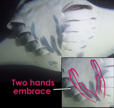 Otho Dee Ray was first identified on July 31, 2015, by James Wing in Kauna’oa Bay. He was about 5 feet fin tip to fin tip. He was a pup with tiny claspers but has grown to 7-8 feet already.