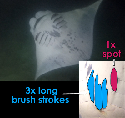 Pu'uwai has 3x long brush strokes and 1x spot on the top right-hand side.
