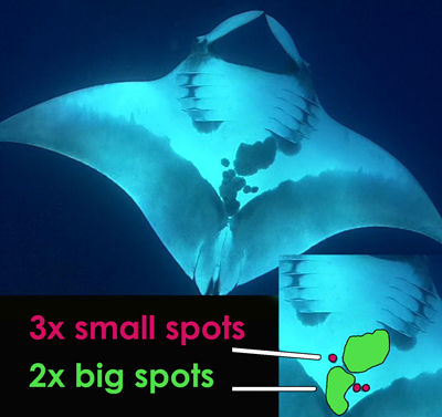 Rami Ray (pronounced “ray me ray”) was identified on October 31, 2011 at Manta Heaven by Captain Ron Gittins from Coral Reef Snorkel Adventures and his friend Jerry Busheff. Rumor is that she is bigger than Big Bertha.