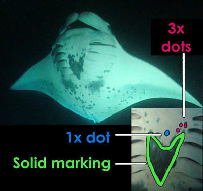 Salem spent many of her early days at Manta Village. Soon she expanded her home range to both sites. As a pup, she loved divers and snorkelers, but today she stays in mid-water or with the divers when coming to Manta Heaven.