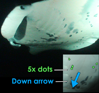 Sparrow Ray was identified on September 22, 2008 at Manta Heaven. She has a damaged right cephalic fin.