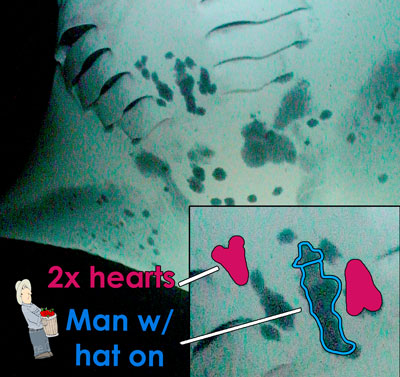 Who Ray has two smaller hearts for identifying marks plus a "man with a hat".