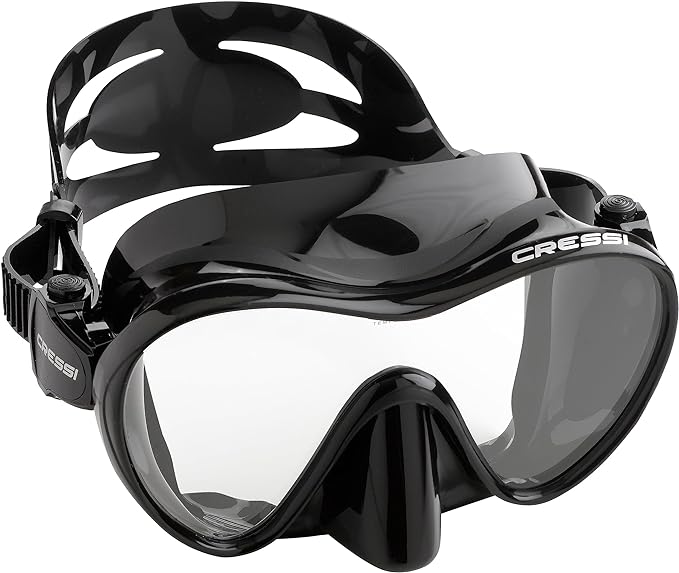- Cressi’s frameless design bonds a high-grade silicone skirt directly to a single lens for the ultimate in simplicity.